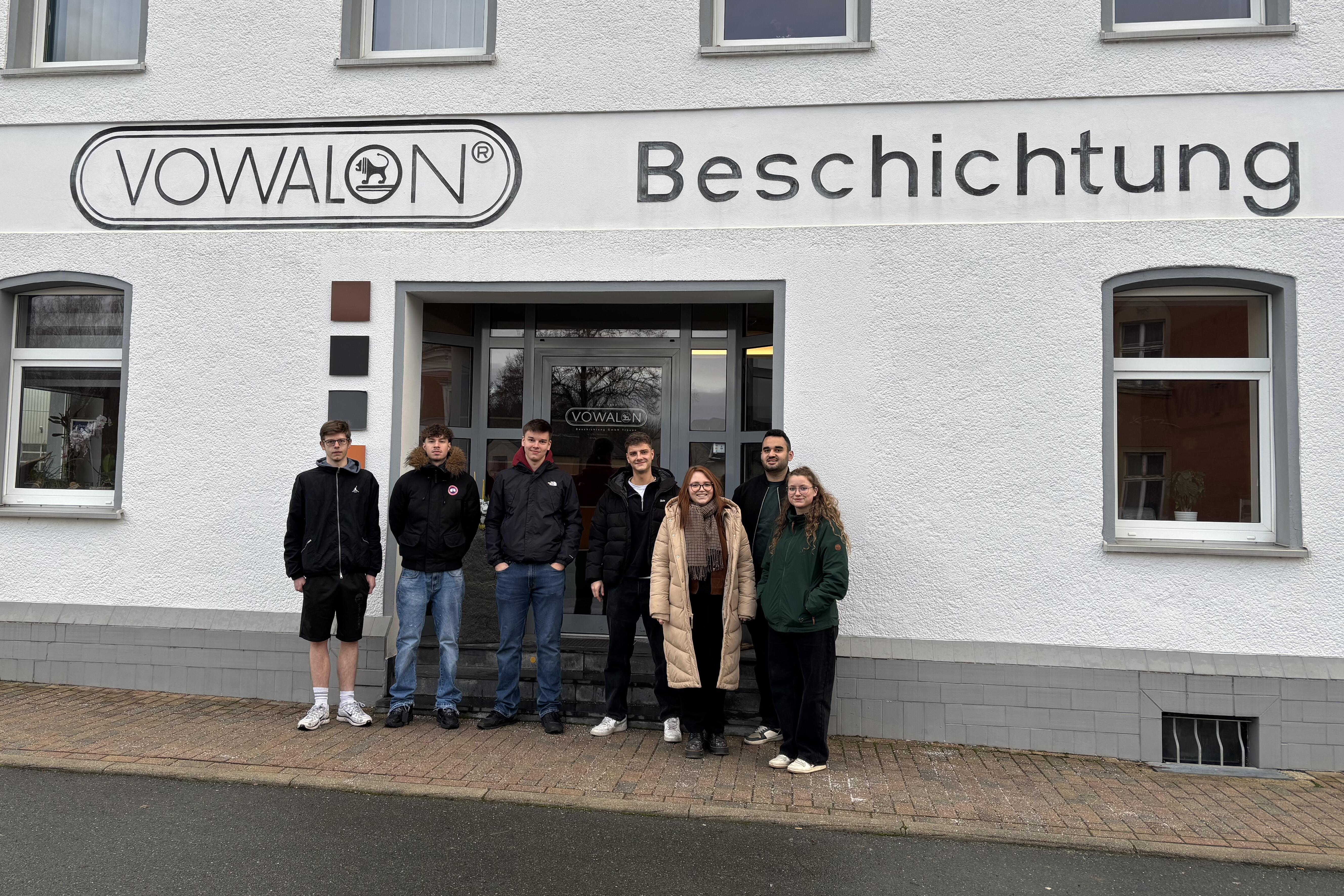 Die Schülerinnen und Schüler der Fachschulklasse Textil und die Auszubildenden Produktveredler sowie die Fachlehrerin Frau Brückmann besuchten am 25.11.2025 den Veredlungsbetrieb VOWALON Beschichtung GmbH in Treuen. Die Führung wurde von Herrn Wedig, Abteilungsleiter der Flammkaschierung, durchgeführt.