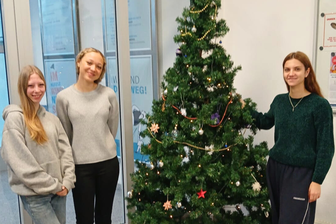 Die Schülerinnen und Schüler des Berufsvorbereitungsjahres der Klasse BVJ25A haben auch in diesem Jahr wieder unsere Weihnachtsbäume im Foyer und in der Cafeteria weihnachtlich geschmückt 🎄