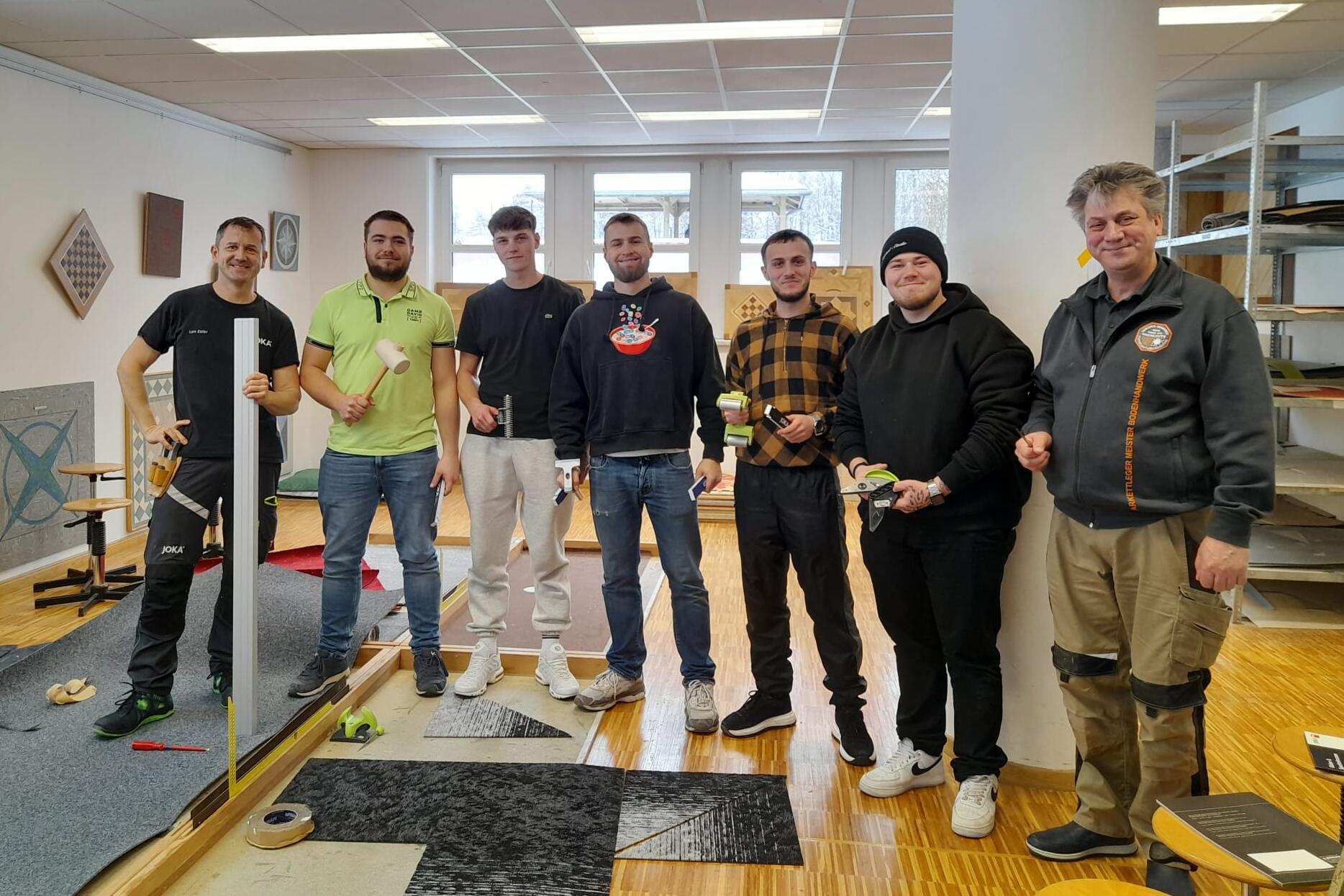 Am Dienstag, 27. Januar 2026, führte Herr Lars Zoller der Firma W. & L. Jordan GmbH verschiedene Verlegearten für Teppiche sowie die Einarbeitung von Intarsien bei den Auszubildenden Bodenlegern des 3. Lehrjahres vor.
